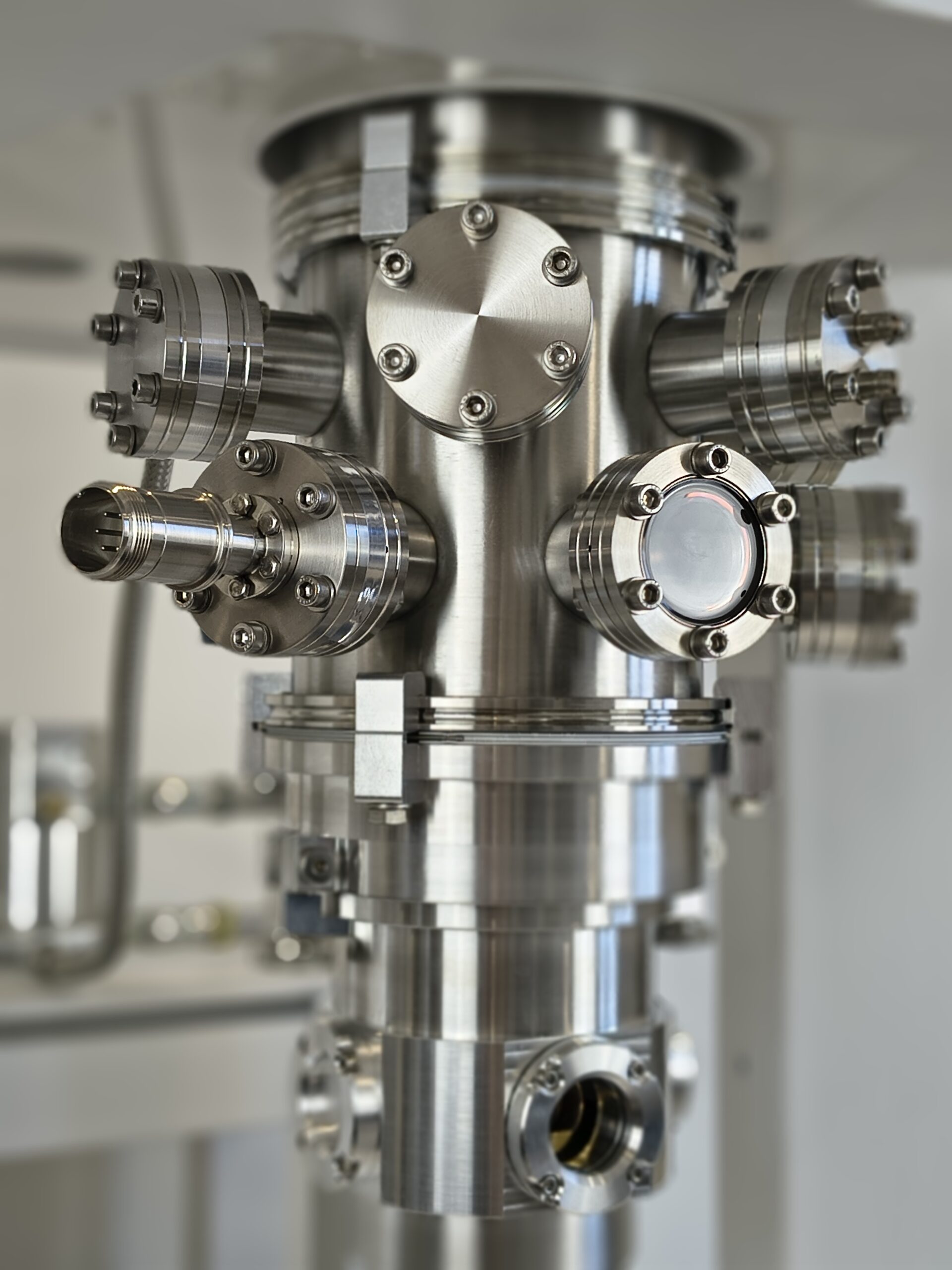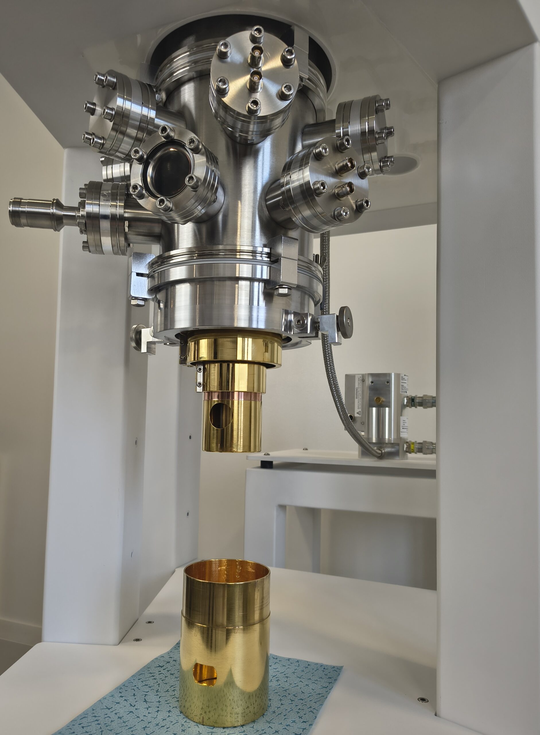 - Komora próżniowa wyposażona w liczne porty m.in. port dostosowany do głowicy typu Pulse Tube, porty do zamocowania osłony próżniowej, porty do elektrycznych przejść próżniowych, port do zaworu bramowego